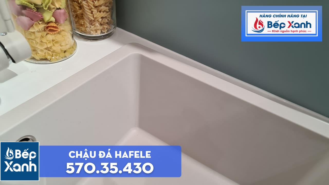 Điểm nhấn cho thiết kế đơn giản của chậu Hafele là viền bo cong nhẹ nhàng ở 4 cạnh. Một phần giúp tăng tính thẩm mỹ, phần khác tránh tình trạng mẻ cạnh hoặc gây trầy xước tay trong quá trình sử dụng.