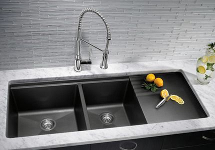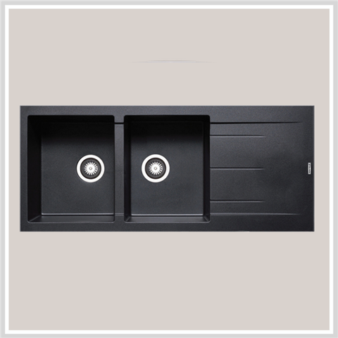 Chậu rửa bát dương bàn bếp màu đen HAFELE HS-G11650-Carbon 565.83.341 được thiết kế 2 hố có lòng sâu nên có thể chứa được nhiều thực phẩm như rau củ, hoa quả... và thiết bị nhà bếp lớn như xoong nồi, chảo, thớt... Hơn thế, rửa lại rất an toàn, không bị bắn nước hoặc tràn nước ra ngoài đảm bảo sự sạch sẽ đồng thời là tiết kiệm thời gian dọn rửa. Ngoài ra, 1 bàn có các gờ thuận tiện hơn cho bạn tron việc để đồ trước khi rửa hoặc rửa xong rồi.