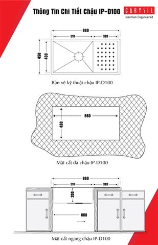 Thông Tin Kỹ Thuật Chậu Rửa Chén Inox304 Carysil IP-D100