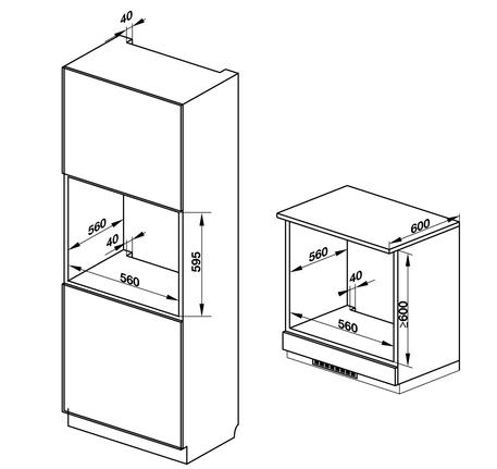 Ngang 59.5 cm - Cao 59.5 cm - Sâu 61.5 cm - Nặng 37.6 kgKích thước khoang lò: