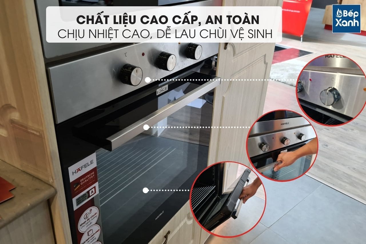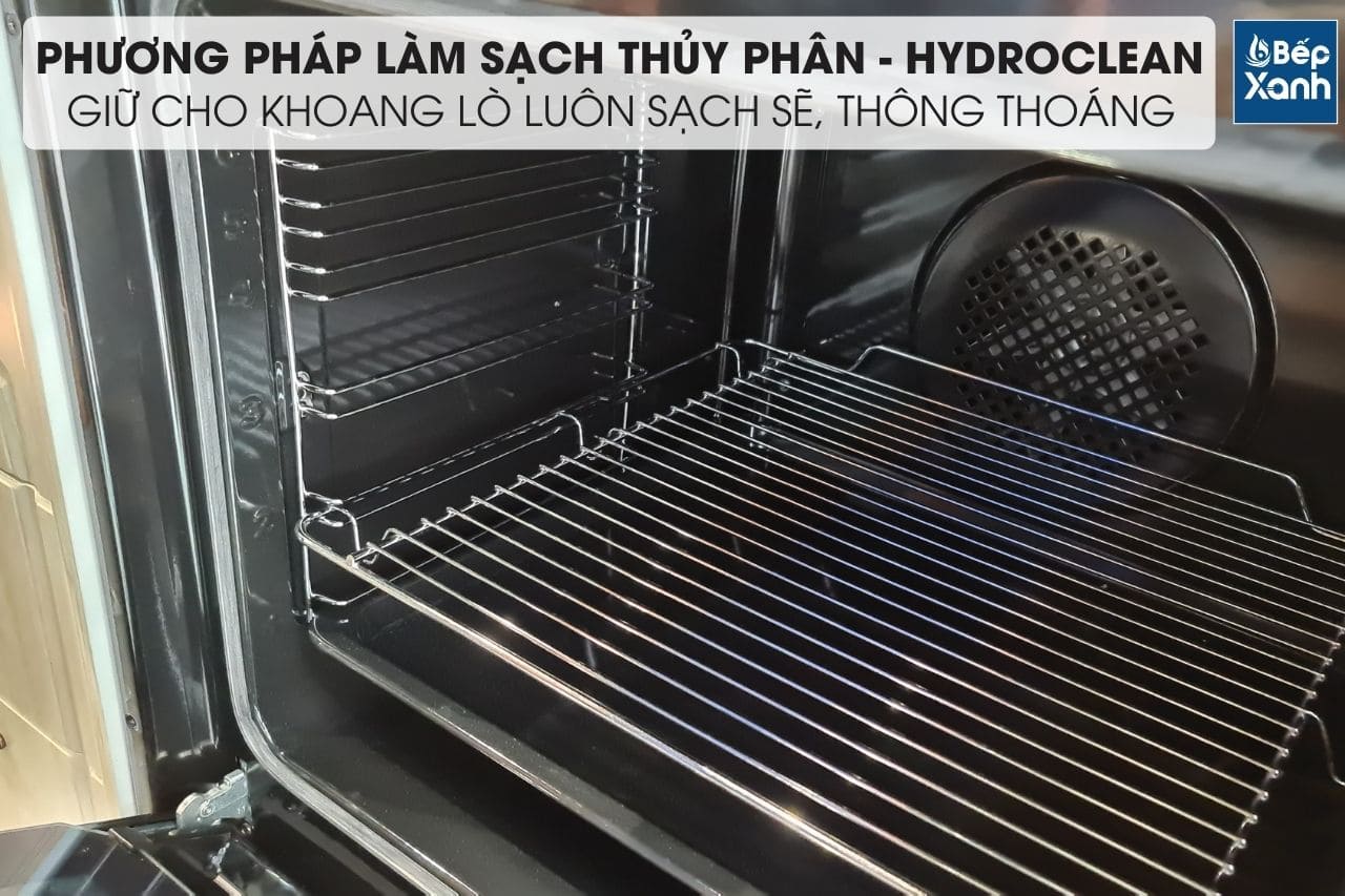 Đèn trong khoang lò; Chức năng vệ sinh bằng phương pháp thủy phân; Tiêu chuẩn tiết kiệm năng lượng: A (Châu Âu); Hẹn giờ lên tới 2 giờ