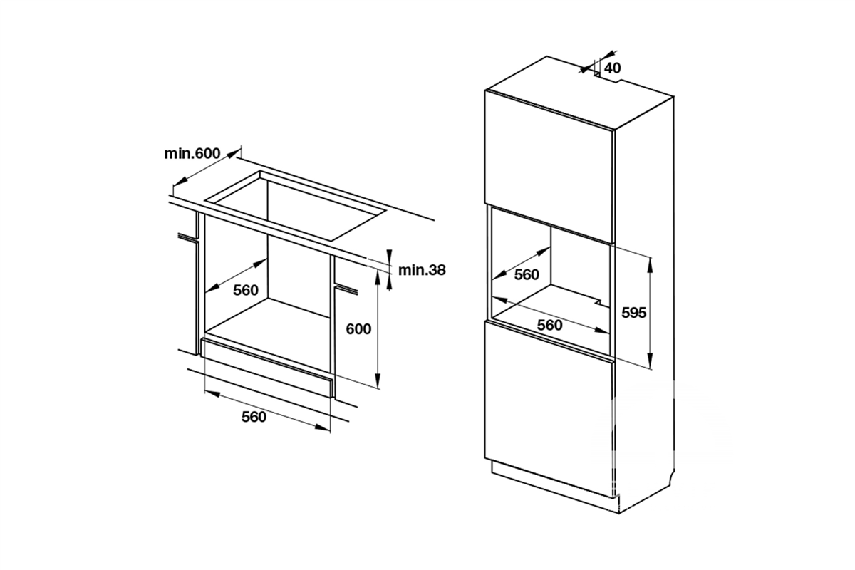 Kích thước (W x D x H): 595 x 575 x 595 mm
