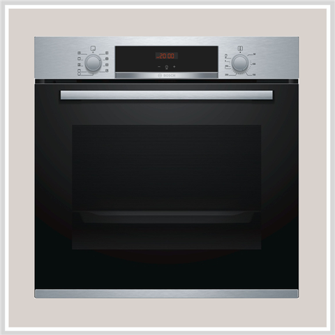 Lò nướng đa chức năng Bosch HBA512BR0: lò nướng đối lưu lắp âm tủ. thiết kế màu thép không gỉ kết hợp mặt kính đen sang trọng. nhập khẩu chính hãng từ Tây Ban Nha chất lượng cao với 7 chức năng nướng tiện dụng, có khả năng điều chỉnh nhiệt chính xác giúp nướng thức ăn nhanh chín và thơm ngon.