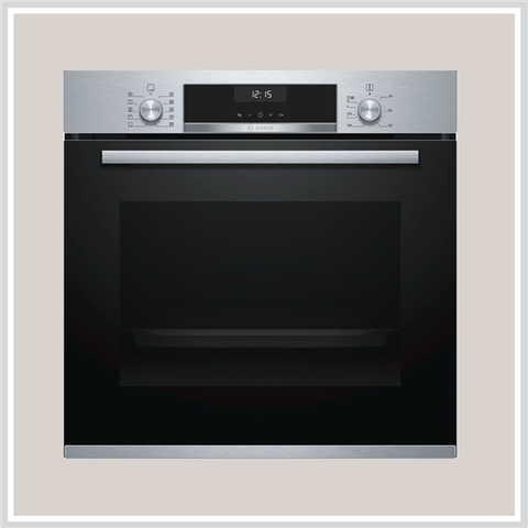 Lò nướng đa chức năng Bosch HBA5370S0: lò nướng đối lưu lắp âm tủ. thiết kế màu thép không gỉ kết hợp mặt kính đen sang trọng. nhập khẩu chính hãng từ Tây Ban Nhachất lượng cao với 7 chức năng nướng tiện dụng, có khả năng điều chỉnh nhiệt chính xác giúp nướng thức ăn nhanh chín và thơm ngon.