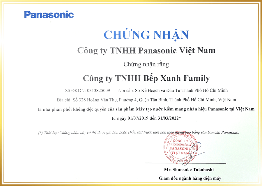 Chứng nhận phân phối Panasonic chính hãng.