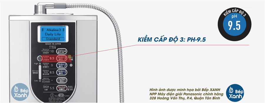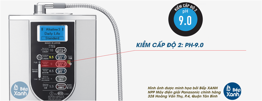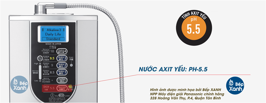 | Khả năng vận hành liên tục | Xấp xỉ 30 phút ở nhiệt độ phòng (xấp xỉ 10 phút đối với Mạnh hơn ở mức Kiềm 3 (Nước uống hàng ngày), mức Kiềm 4 (Kiềm mạnh), Axit nhẹ) (Ghi chú 2) | |
