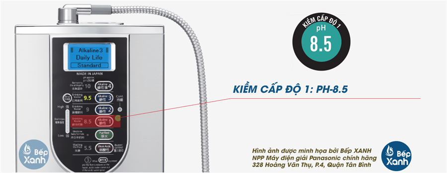 | Tuổi thọ bộ điện phân | Xấp xỉ 850 giờ cộng dồn (chỉ tính thời gian sản xuất nước ion, thời gian vệ sinh) | |