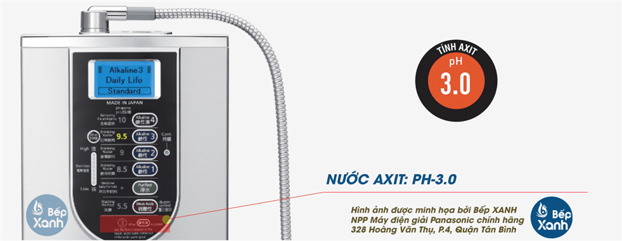Nước Axit PH 3.0 từ máy Panasonic TK-AS66 có thể dùng để vệ sinh bếp, vệ sinh khu vực chậu rửa hoặc vệ sinh nhà tắm, bồn, thau, chậu hay các vật dụng trong gia đình. Ngoài ra Nước Axit pH 3.0 có khả năng khử trùng, sát trùng vết thương.