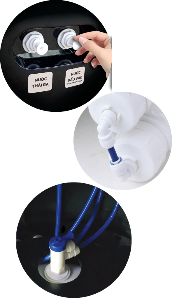 | Dễ dàng thay thế: Toàn bộ các liên kết đường nước là dạng nối nhanh, thuận tiện cho lắp đặt, thay thế sửa chữa, hạn chế được rò rỉ nước của các liên kết đường nước | |
