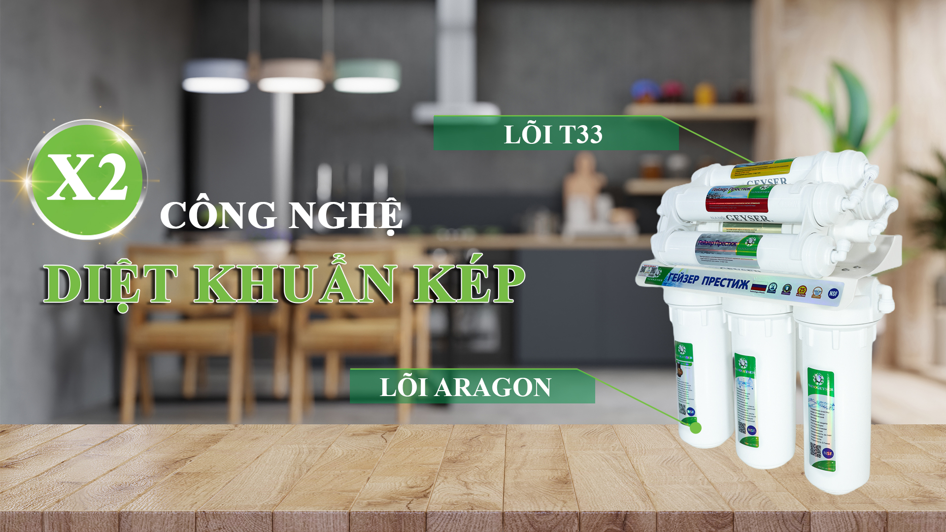 Công nghệ diệt khuẩn kép tích hợp trong máy lọc nước Nano Geyser Eco Plus
