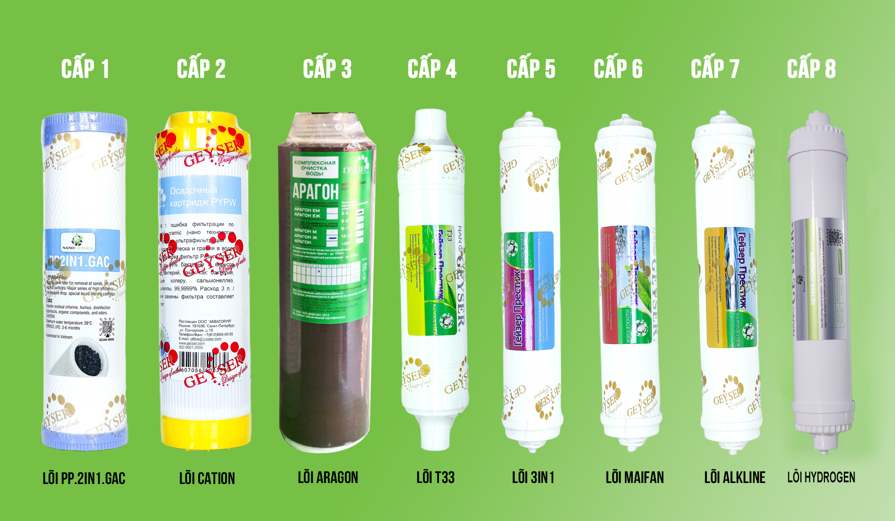 Bộ lõi lọc 8 cấp Nano Geyser - Hydrogen