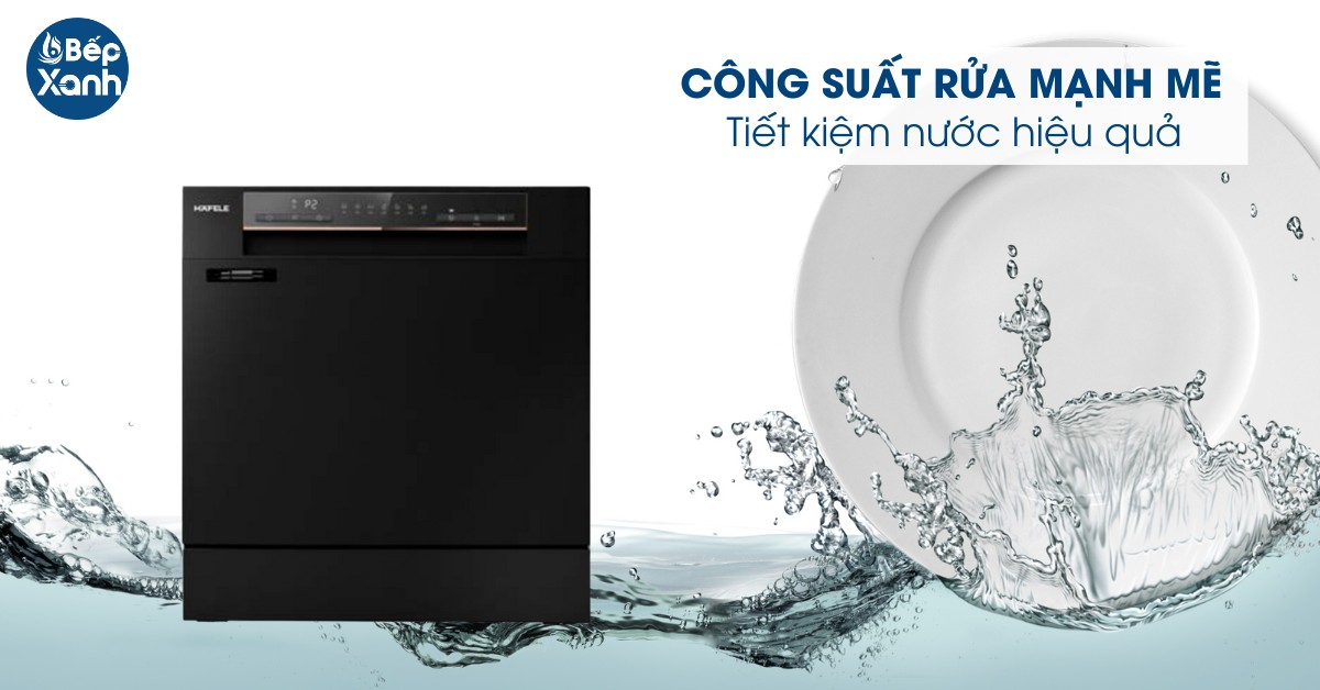- Máy tiêu thụ 9.5 lít/ 1 lần rửa, cung cấp đủ dung tích để rửa từ 2 đến 3 bữa ăn một lần. Điều này thể hiện khả năng tiết kiệm nước hiệu quả.