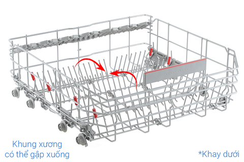 + Khay dưới: Cho phép bạn kéo trượt khay chứa ra vào linh hoạt khi lấy hoặc cho vật dụng vào máy.