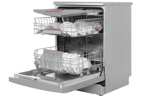 - Sản phẩm được thiết kế gam màu bạc với chất liệu vỏ máy và cửa máy đều được làm bằng thép sơn tĩnh điện, có khả năng chống va đập và giảm thiểu trầy xước tối ưu. Vì thế, máy rửa chén dễ dàng phối hợp với nhiều nội thất khác trong không gian bếp cũng như duy trì tính thẩm mỹ tốt hơn trong suốt quá trình sử dụng.