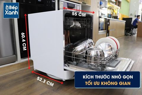 Mặt trước máy rửa bát mini có trang bị lớp kính giúp bạn quan sát được chương trình rửa bên trong. Nhờ đó, khi nhận thấy bên trong máy có vấn đề gì khi vận hành bạn sẽ tạm dừng hoặc tắt máy kịp thời hơn.