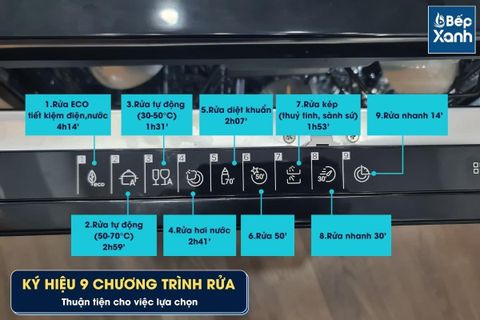 Ký hiệu chương trình rửa được đặt ở phần bên trái để bạn tiện ghi nhớ và chọn lựa, cụ thể như sau: