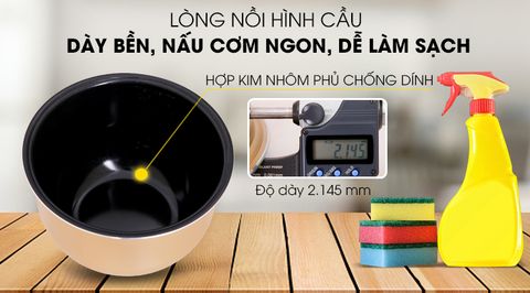 Bên ngoài lòng nồi mạ màu vàng sang trọng bên ngoài bền bỉ, cho lòng nồi đẹp mắt hơn, dùng bền, nấu cơm ngon, chùi rửa đơn giản.