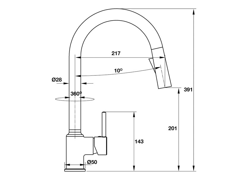+ Vòi bếp Hafele Augustus HT-C201 570.50.280 có những đặc tính sau: